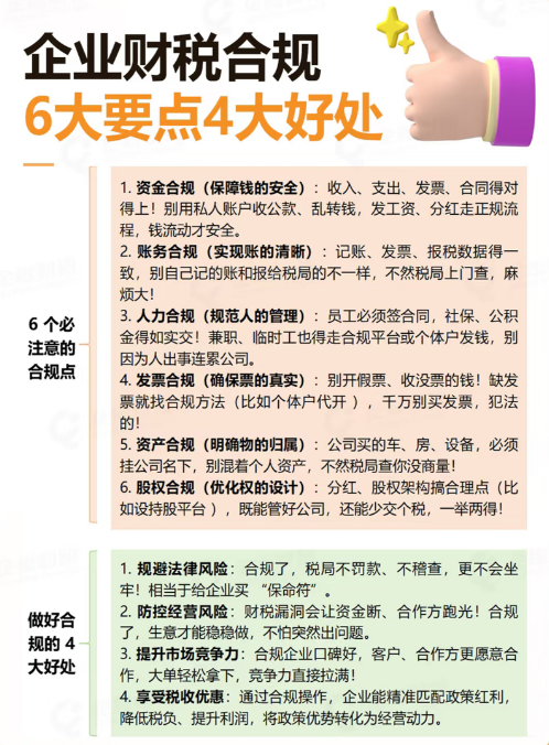 - 提升企业价值:财税合规是企业规范运营的体现,有助于增强投资者、合作伙伴等利益相关方的信任,为企业的长远发展奠定基础。